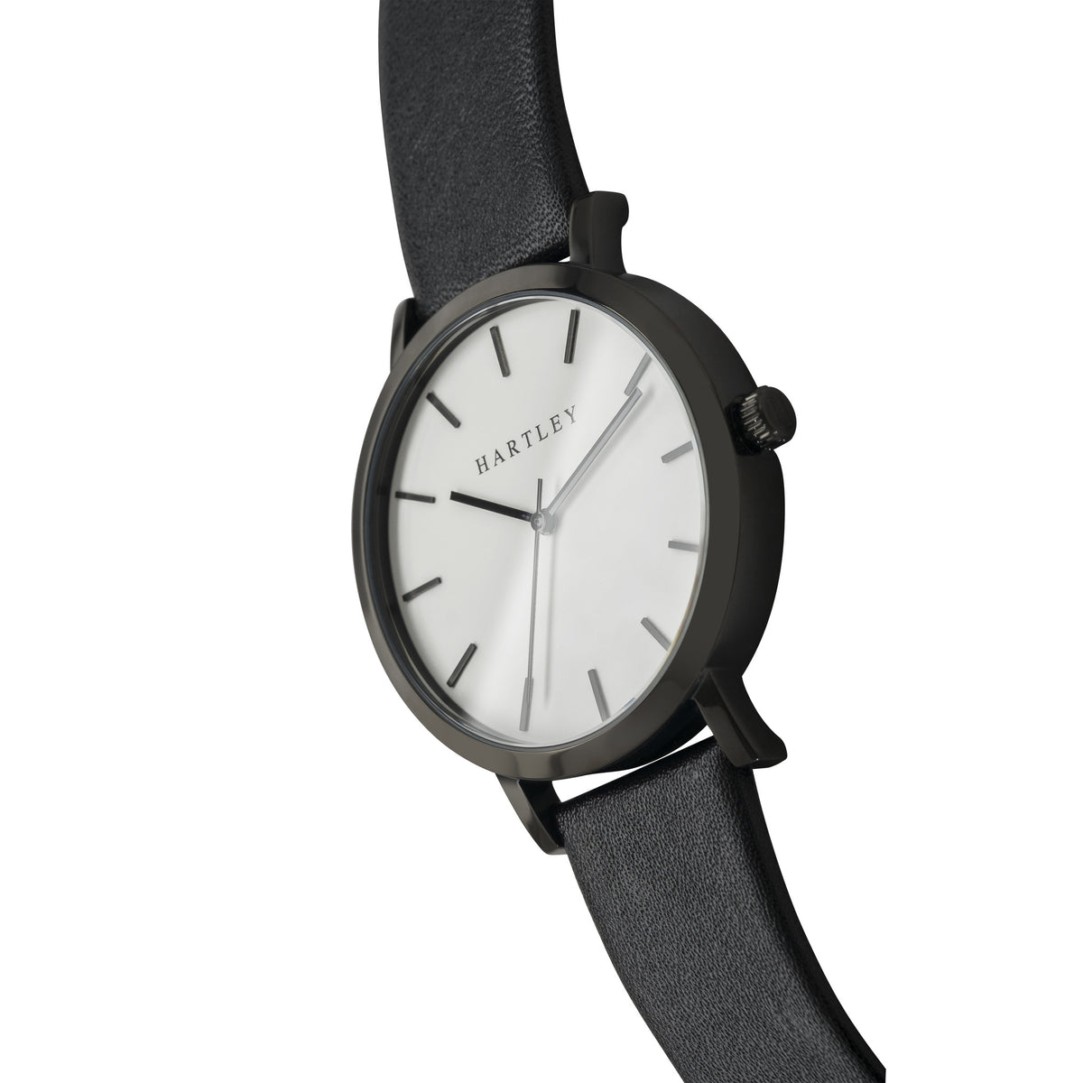A truly minimalistic black & white timepiece featuring polished black dials and hands on a clean white face. Casual or formal, this timepiece suits every occasion.